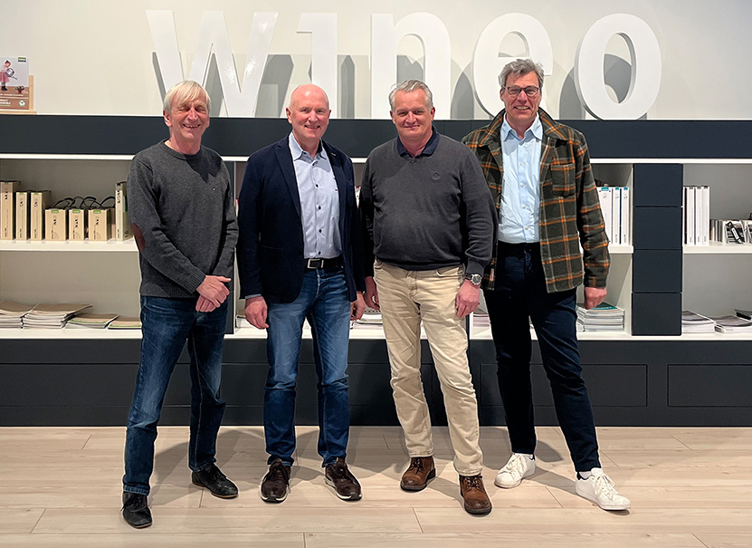 Die Projektgruppe mit den Autoren, v. links: Uwe Viebrock, Bernhard Grewing (Wineo), Norbert Lauhöfer (Prinz) und Rüdiger Dicke (Unifloor)