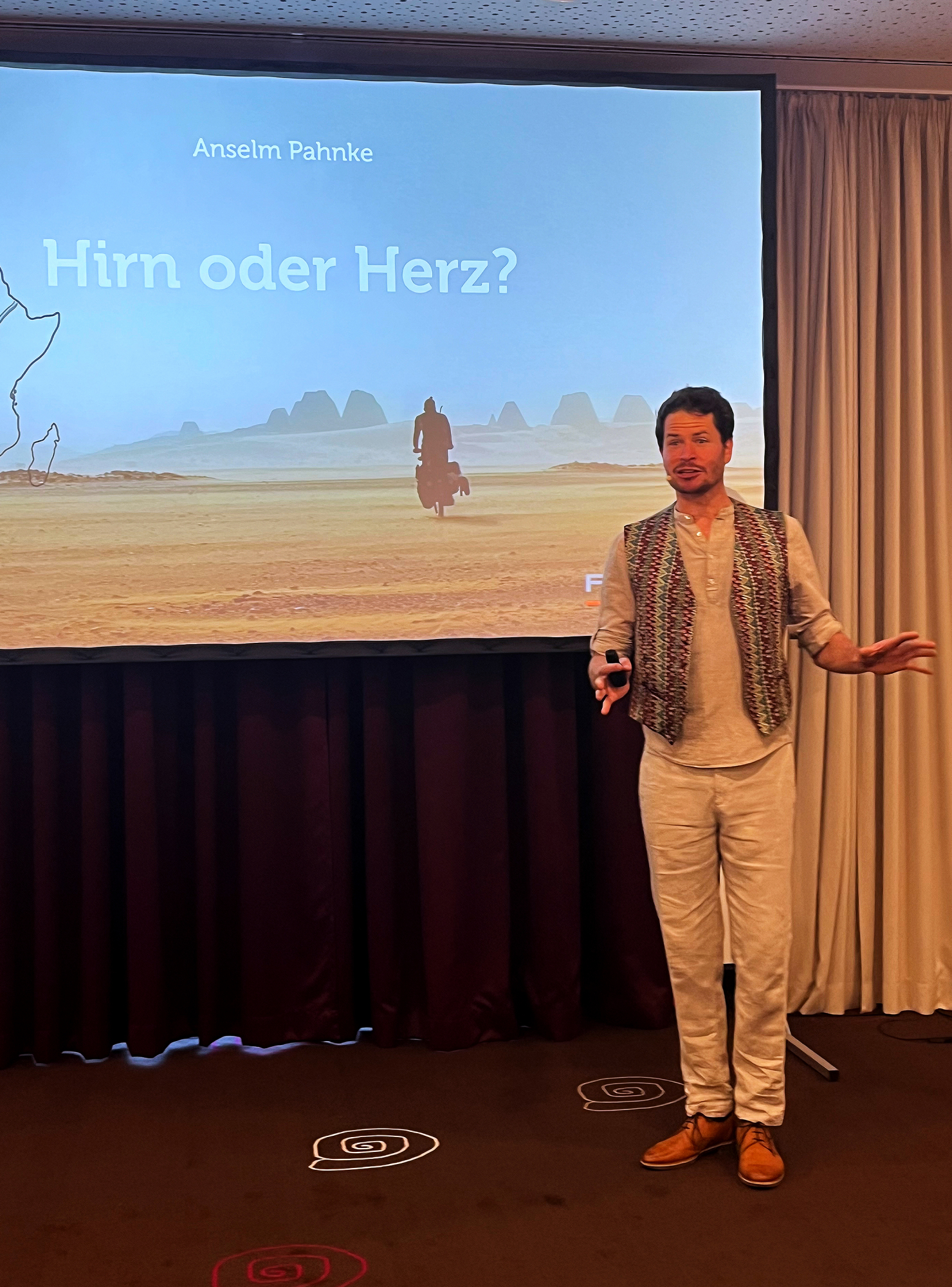 Mit Hirn oder Herz neue Wege gehen! Das war die Headline von Anselm Pahnke, Geophysiker, Ozeanograf, leidenschaftlicher Abenteurer und Filmemacher. Drei Jahre radelte er allein durch die Welt, allein in Afrika 414 Tage und 15.000 Kilometer durch 15 Länder. In dieser Zeit lernte er, das Unbekannte zu seinem Freund zu machen.